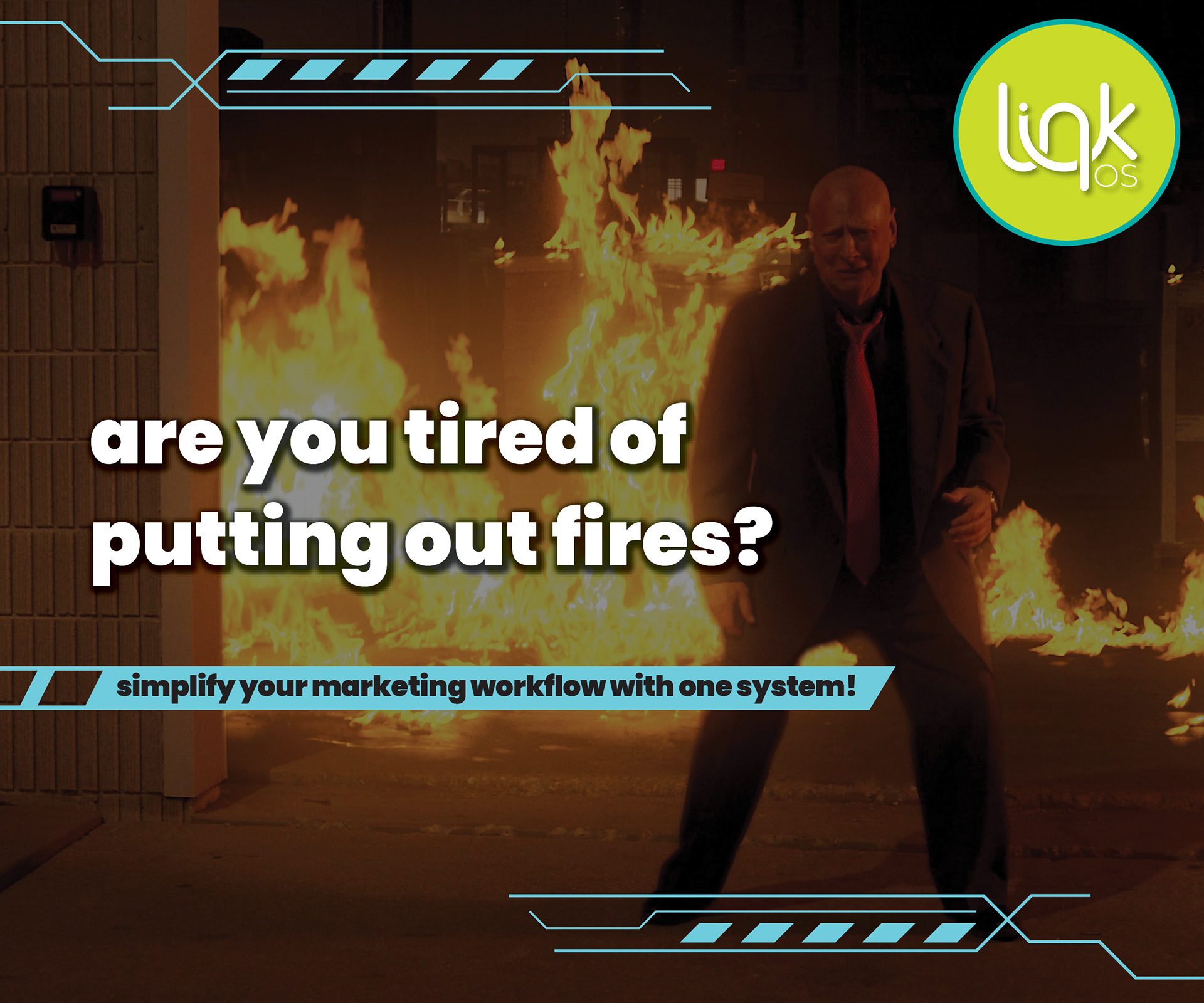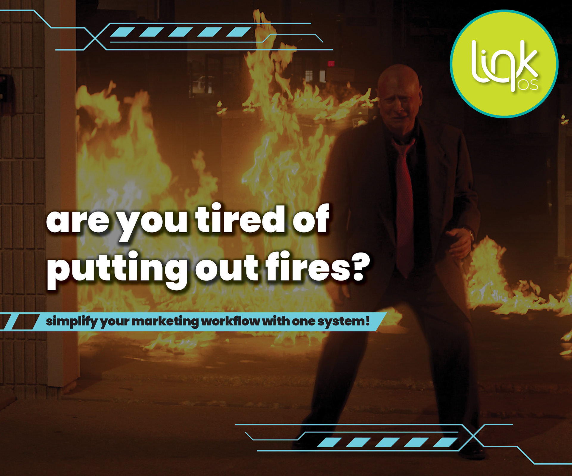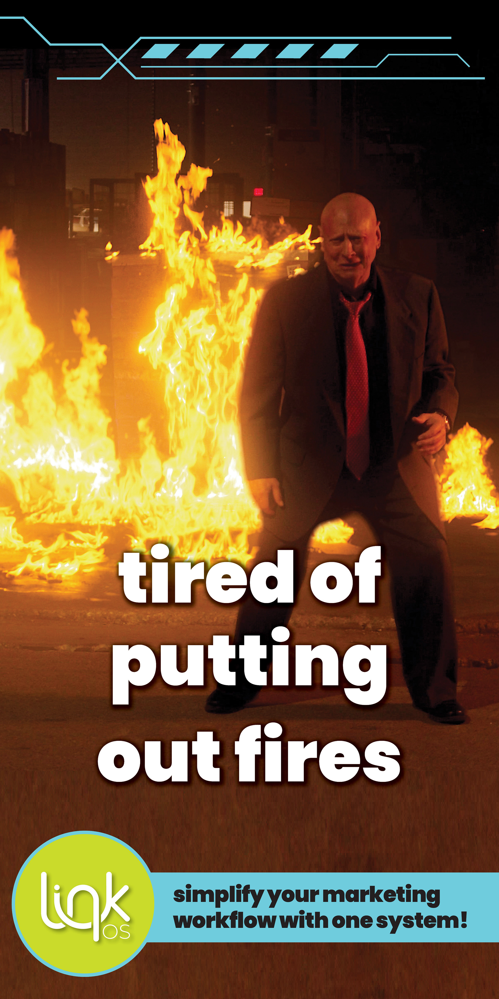 This is a graphic that was going to be turned into an email to send to prospective clients of Link OS. It was designed to look like a movie review site (supplied with movie screenshots, a "review" that was yet to be written, a star rating, and contact links.